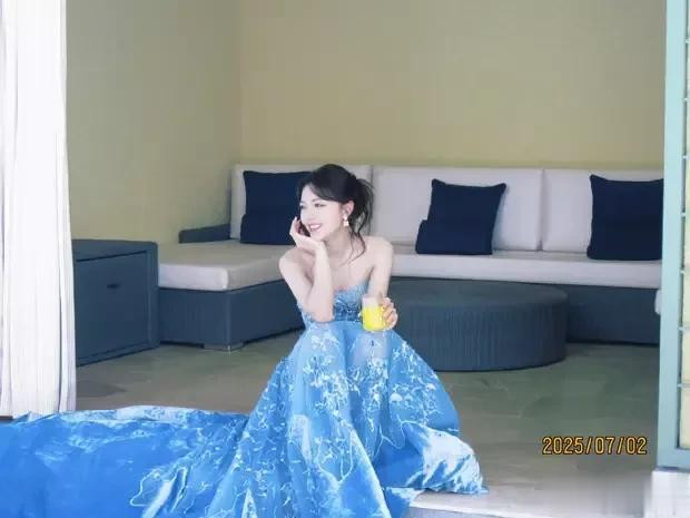 赵今麦身着的蓝色长裙,仿佛是为她量身定做的清凉装扮。那轻盈的裙摆随着微风轻轻摇曳,如同海浪般起伏,带给人一种无尽的清新与舒适。这抹蓝色不仅衬托出她青春的活力,更彰显出她独特的时尚品味。在这样的装扮下,赵今麦仿佛成为了夏日的代言人,让人感受到那份独属于夏天的清凉与美好。